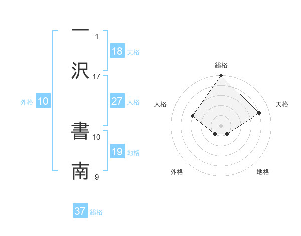 一沢 書南さんの総格は37画の5点!