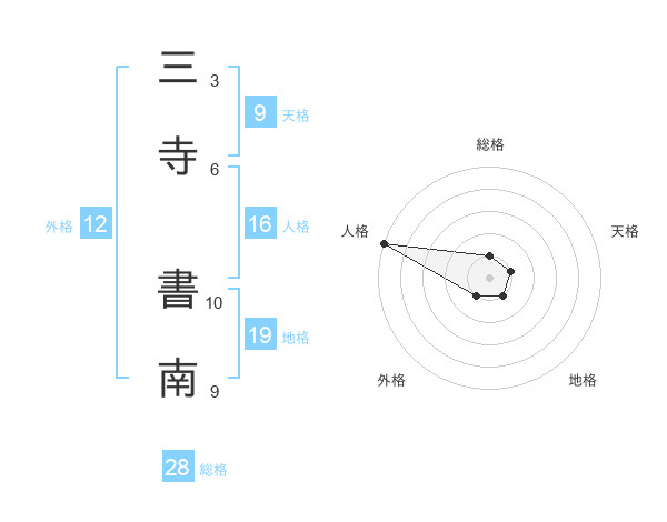 三寺 書南さんの総格は28画の1点!