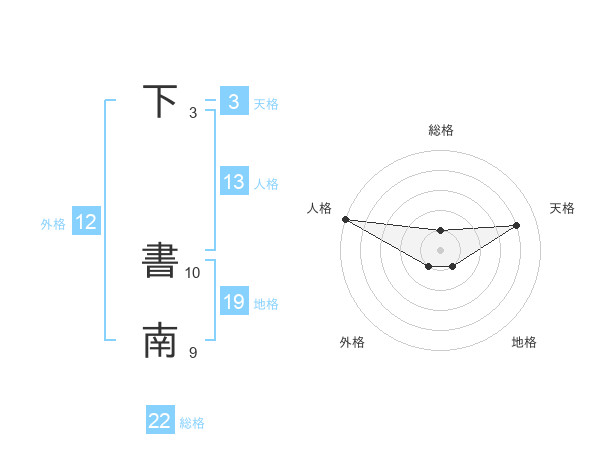 下 書南さんの総格は22画の1点!