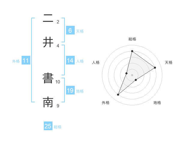 二井 書南さんの総格は25画の4点!