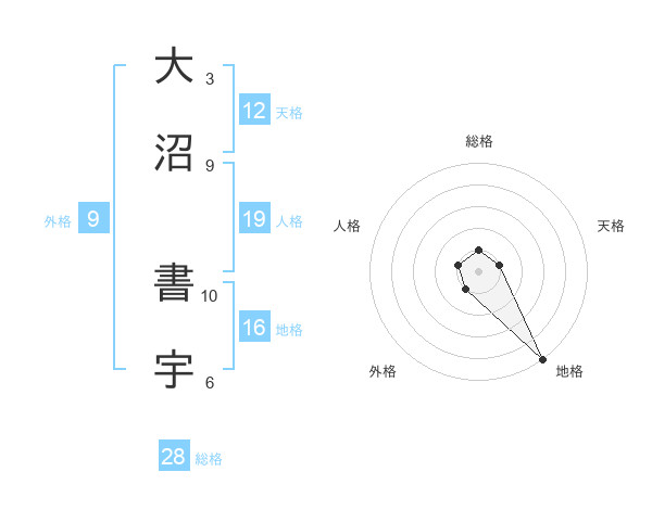 大沼 書宇さんを姓名の画数から五運を鑑定