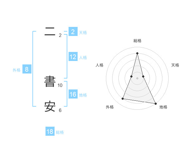 二 書安さんの総格は18画の4点!