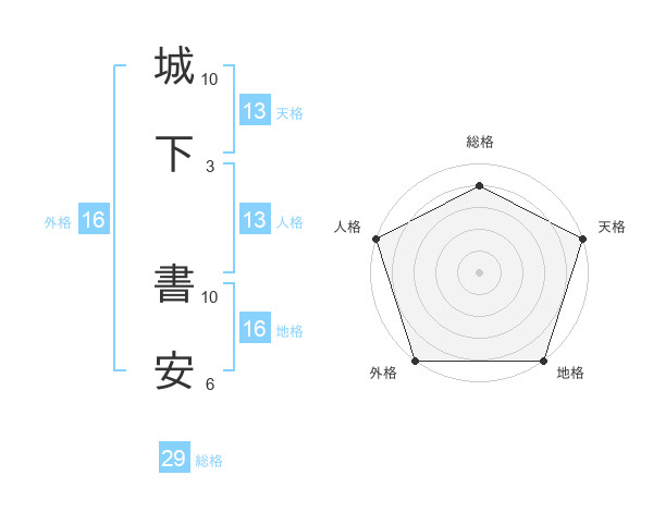 城下 書安さんの天格は13画の5点!