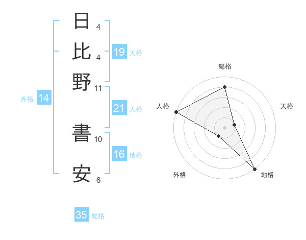 日比野 書安さんの総格は35画の4点!