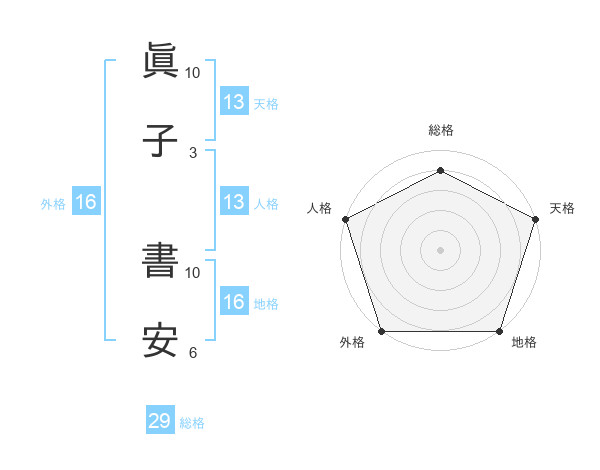 眞子 書安さんの外格は16画の5点!