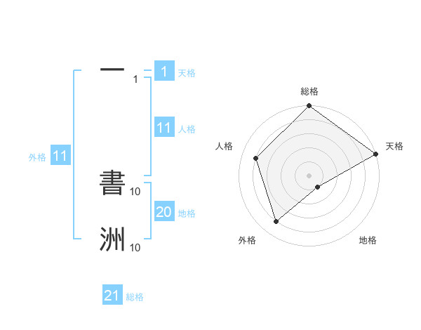 一 書洲さんの総格は21画の5点!