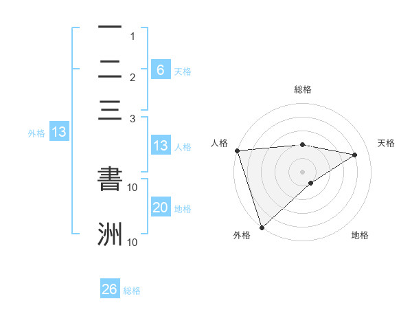 一二三 書洲さんを姓名の画数から五運を鑑定