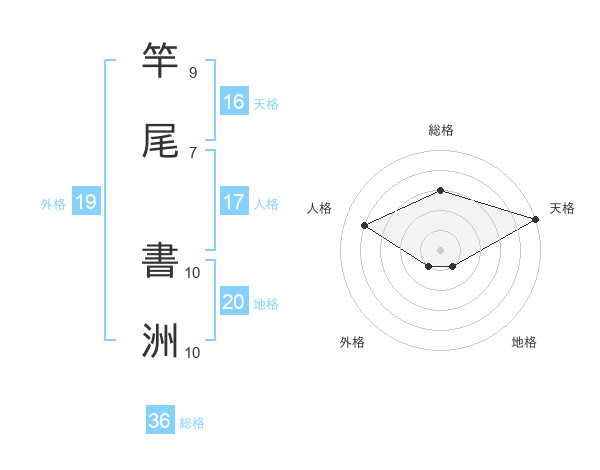 竿尾 書洲さんを姓名の画数から五運を鑑定
