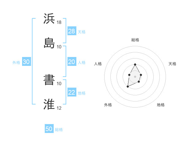 浜島 書淮さんを姓名の画数から五運を鑑定