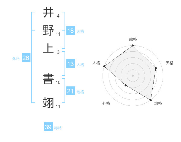 井野上 書翊さんを姓名の画数から五運を鑑定