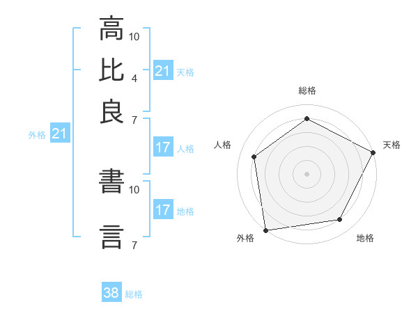 高比良 書言さんの天格は21画の5点!