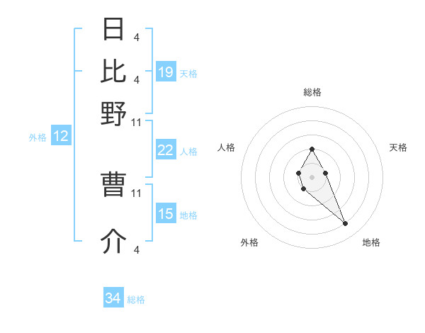 日比野 曹介さんの総格は34画の2点!