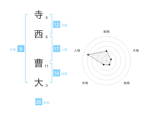 寺西 曹大さんを姓名の画数から五運を鑑定