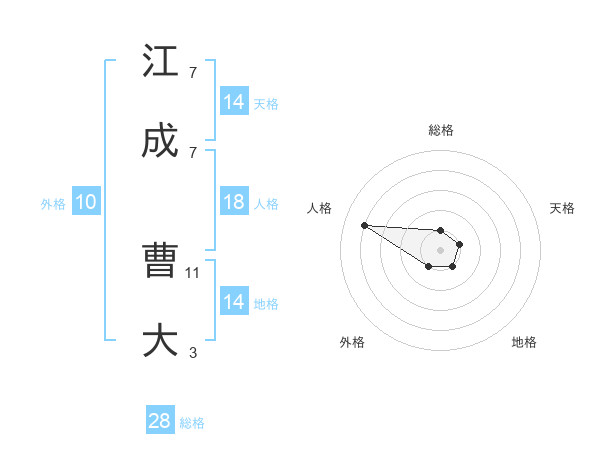 江成 曹大さんの総格は28画の1点!