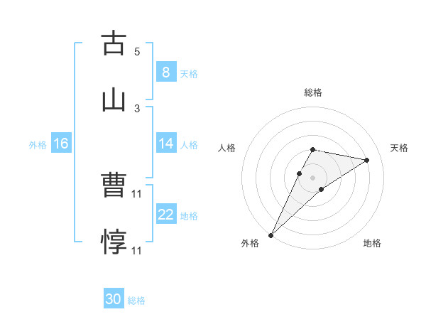 古山 曹惇さんを姓名の画数から五運を鑑定