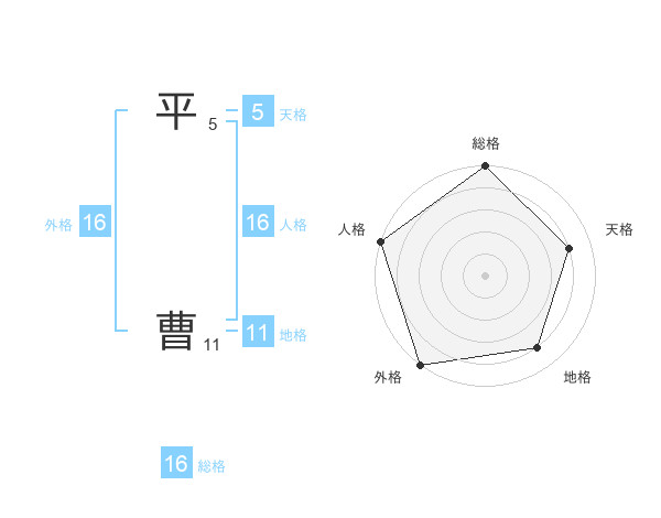 平 曹さんの外格は16画の5点!