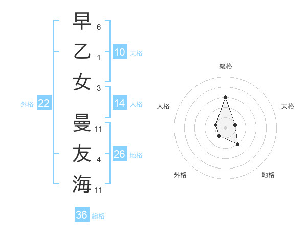 早乙女 曼友海さんを姓名の画数から五運を鑑定