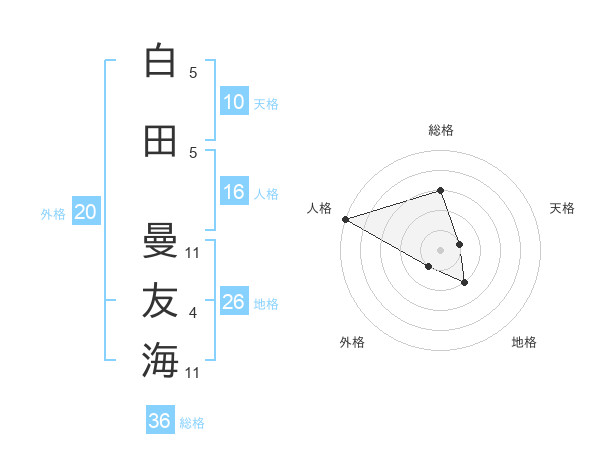 白田 曼友海さんを姓名の画数から五運を鑑定
