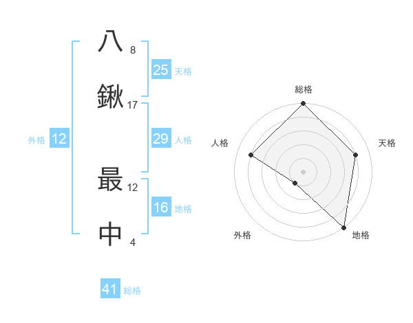 八鍬 最中さんの総格は41画の5点!