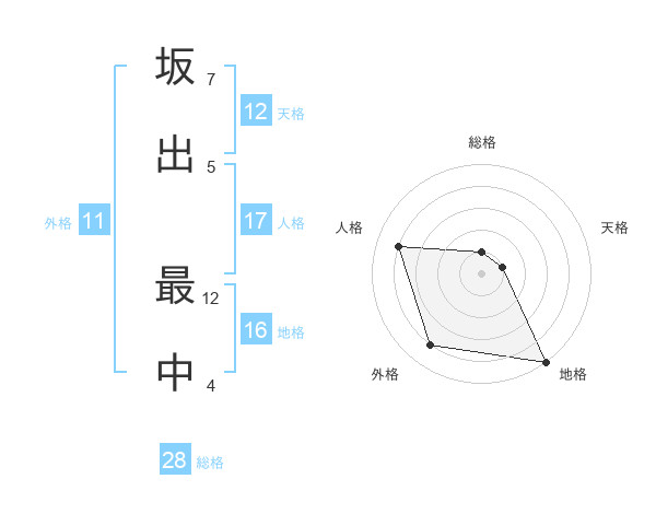 坂出 最中さんの総格は28画の1点!