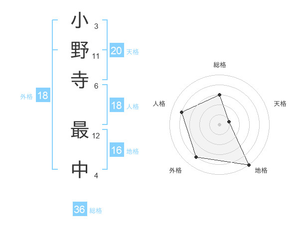 小野寺 最中さんを姓名の画数から五運を鑑定