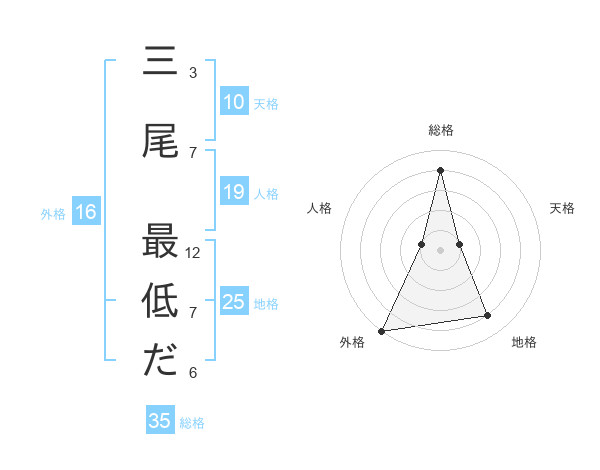 三尾 最低ださんを姓名の画数から五運を鑑定