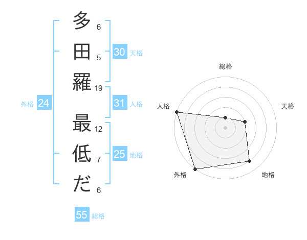 多田羅 最低ださんを姓名の画数から五運を鑑定