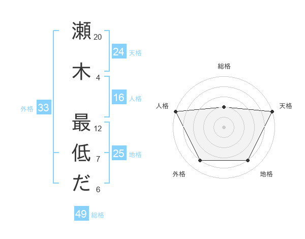 瀬木 最低ださんを姓名の画数から五運を鑑定