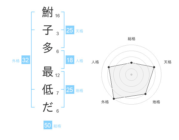 鮒子多 最低ださんを姓名の画数から五運を鑑定