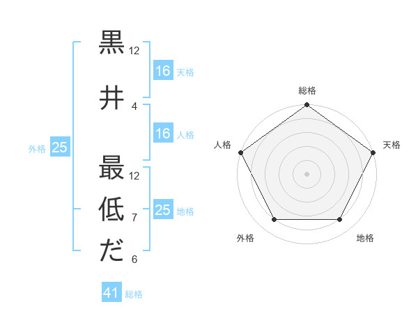 黒井 最低ださんを姓名の画数から五運を鑑定