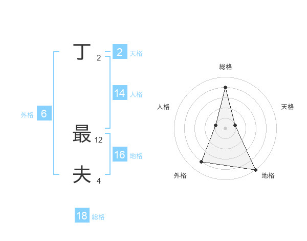 丁 最夫さんの総格は18画の4点!