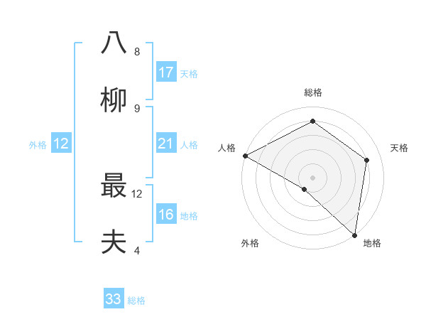 八柳 最夫さんを姓名の画数から五運を鑑定