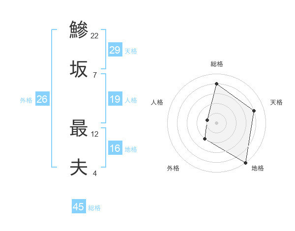 鰺坂 最夫さんを姓名の画数から五運を鑑定