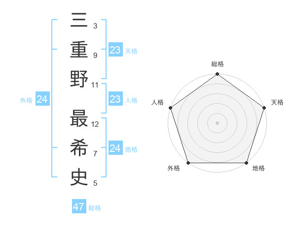 三重野 最希史さんを姓名の画数から五運を鑑定