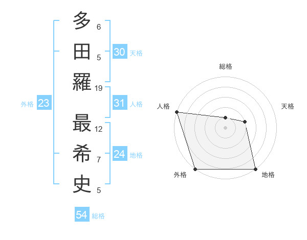 多田羅 最希史さんを姓名の画数から五運を鑑定