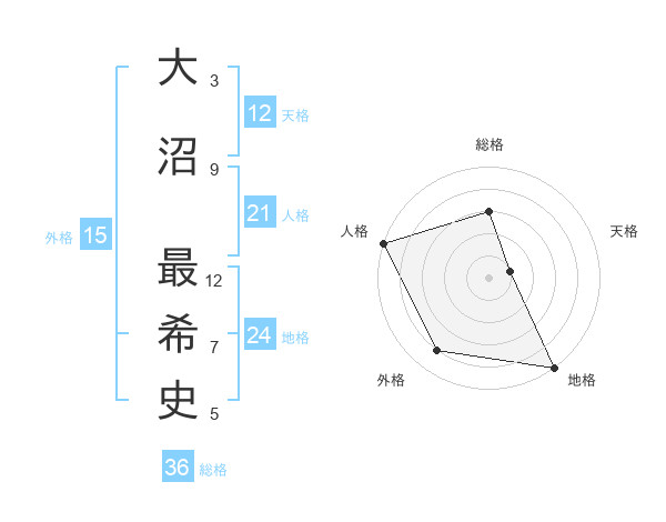 大沼 最希史さんを姓名の画数から五運を鑑定