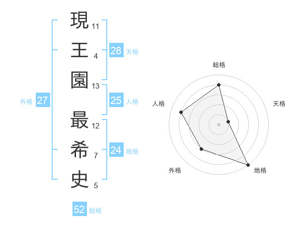 現王園 最希史さんを姓名の画数から五運を鑑定