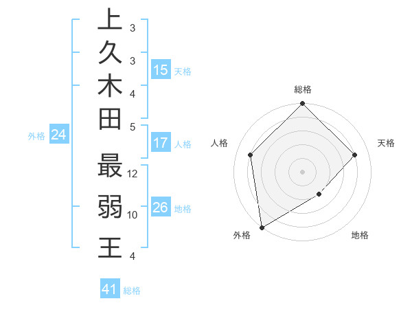 上久木田 最弱王さんを姓名の画数から五運を鑑定