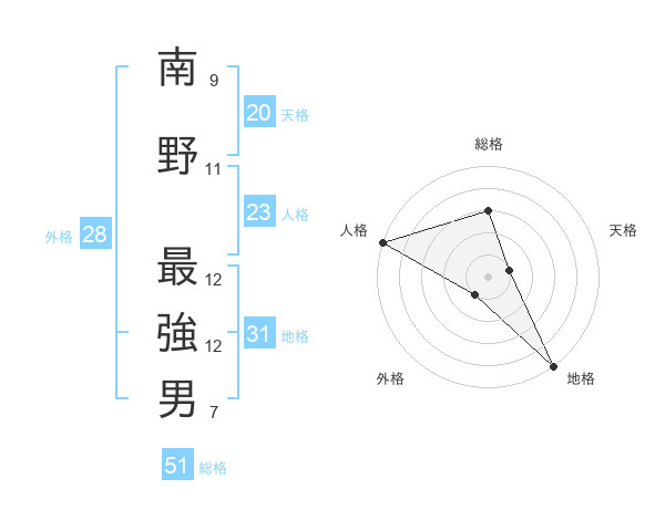 南野 最強男さんの総格は51画の3点!
