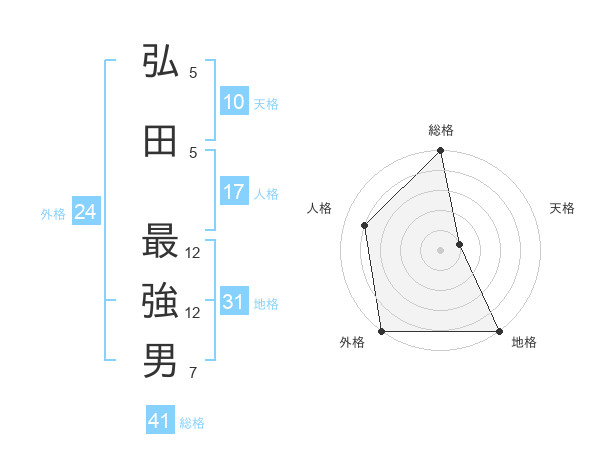弘田 最強男さんの総格は41画の5点!