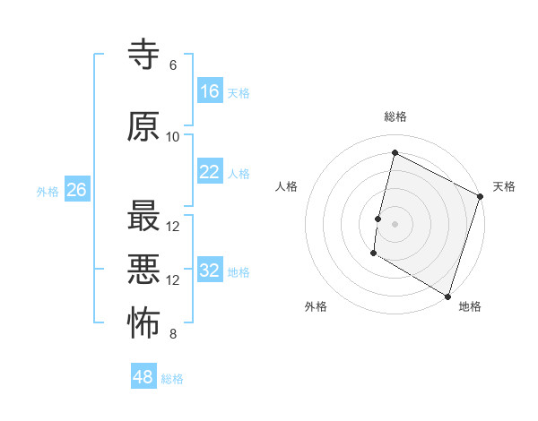 寺原 最悪怖さんの総格は48画の4点!