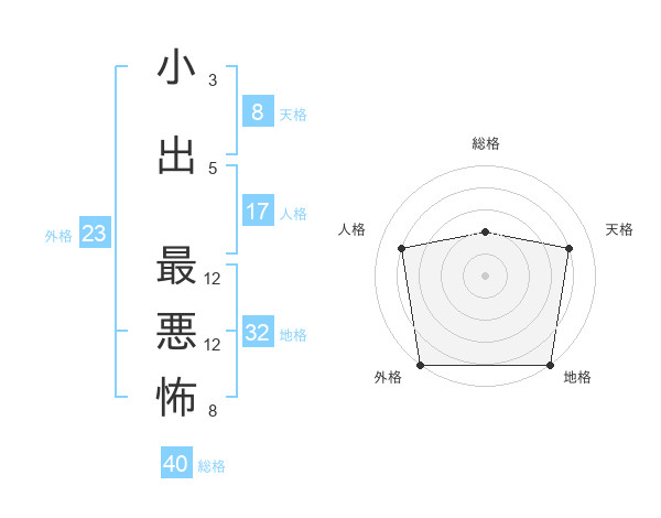 小出 最悪怖さんを姓名の画数から五運を鑑定
