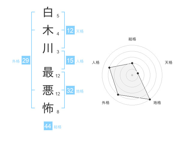 白木川 最悪怖さんの総格は44画の2点!