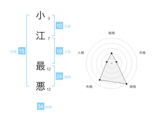 小江 最悪さんの総格は34画の2点!