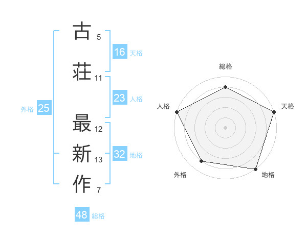 古荘 最新作さんを姓名の画数から五運を鑑定