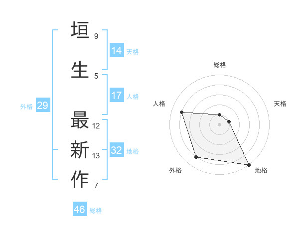 垣生 最新作さんを姓名の画数から五運を鑑定