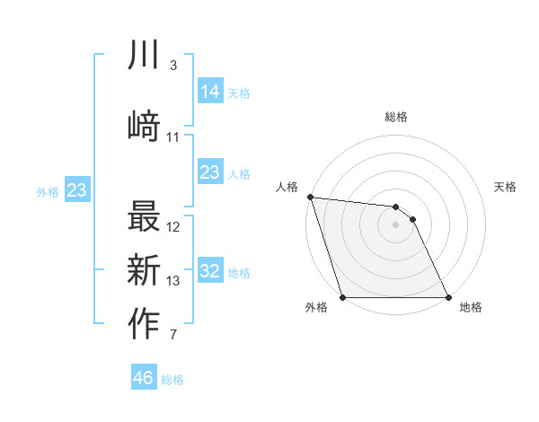 川﨑 最新作さんの総格は46画の1点!
