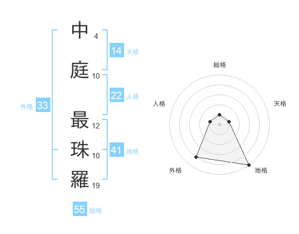 中庭 最珠羅さんの外格は33画の4点!