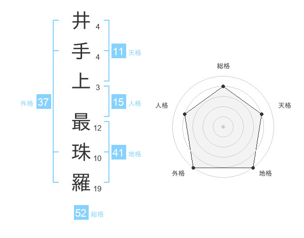 井手上 最珠羅さんを姓名の画数から五運を鑑定