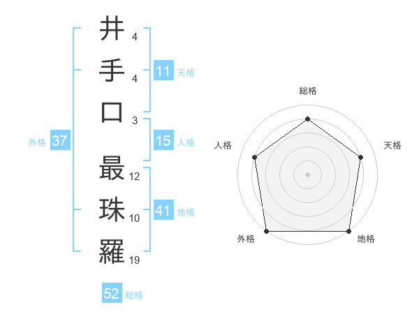 井手口 最珠羅さんの外格は37画の5点!